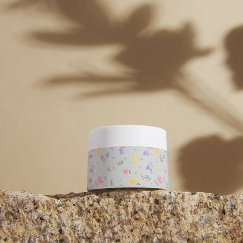 This cute and colorful seamless pattern features hand-drawn flowers and various leaves on a light grey background – perfect for fabric printing, wrapping paper, kids' products, and more.